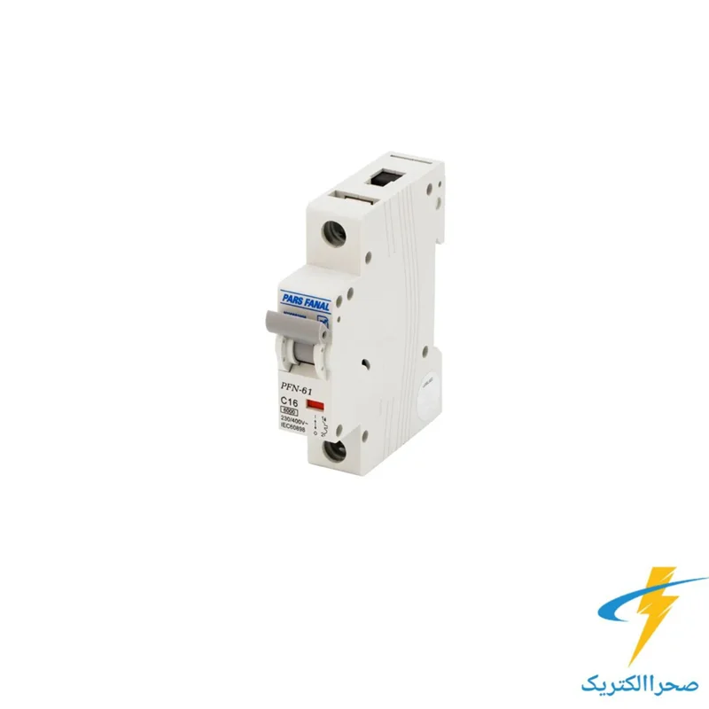 کلید مینیاتوری (MCB) وسیله ای حفاظتی است که از تجهیزات الکتریکی و صنعتی در برابر آسیب های ناشی از اضافه بار و یا اتصال کوتاه محافظت می نماید.کلید های مینیاتوری جریان متناوب پارس فانال در سه تیپ روشنایی (B)، موتوری (C) و سخت موتوری (D) در انواع تک پل، تک پل با نول (1P+N)، دو پل، سه پل، سه پل با نول (3P+N) و چهار پل تولید می شوند. این محصول کلید مینیاتوری تک فاز 16 آمپر تیپ C با ظرفیت قطع 6KA می باشد.