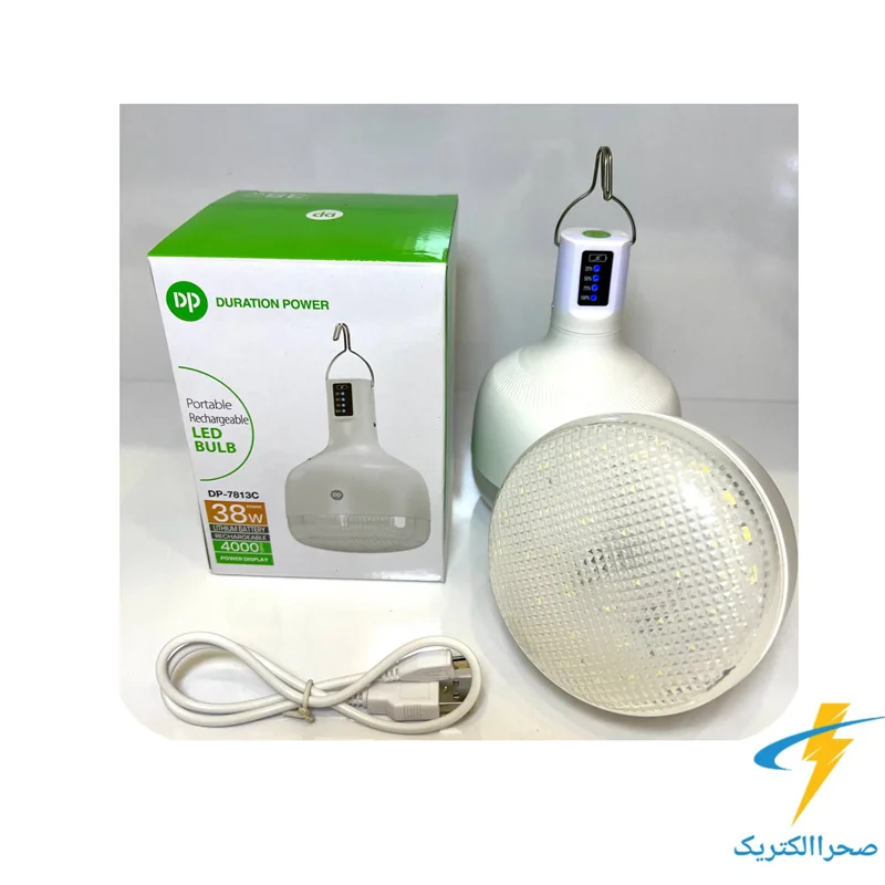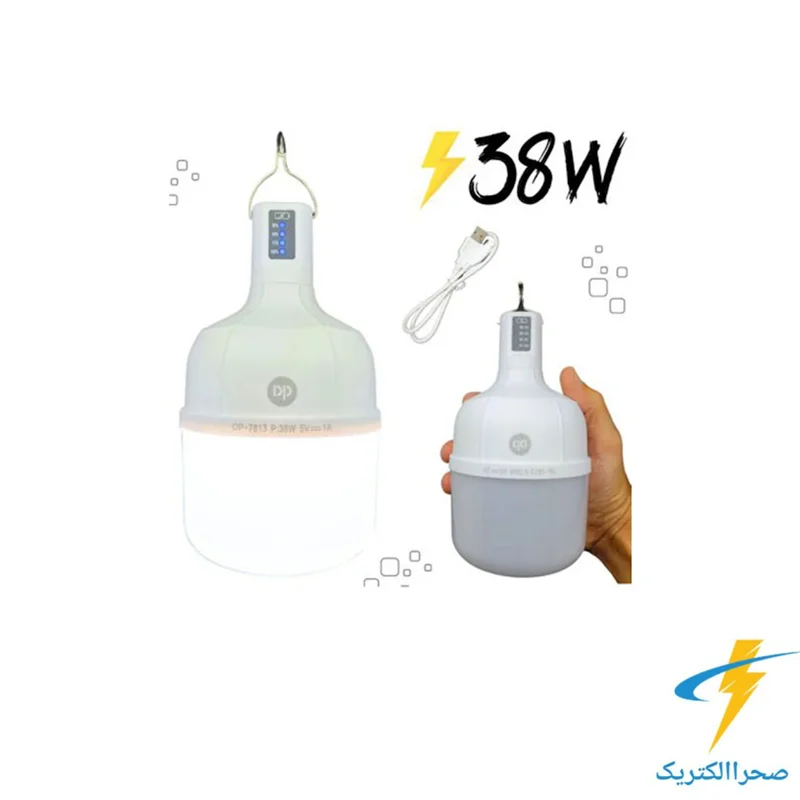 لامپ LED شارژی آویزدار دی پی مدل DP-۷۸۱۴C توان خروجی 3۸ وات را دارد و با وزن سبک اما باتری داخلی ۱6۶۵۰ به ظرفیت 5۰۰۰ میلی آمپر بهترین گزینه برای کمپینگ، طبیعت گردی، مسافرت و ... می باشد، همچنین دارای پنج حالت نوردهی که شامل نور ثابت قوی/ متوسط/ ضعیف/ چشمک زن/ SOS با رنگ نوردهی مهتابی است که برحسب سلیقه و کاربری قابل انتخاب می باشد.