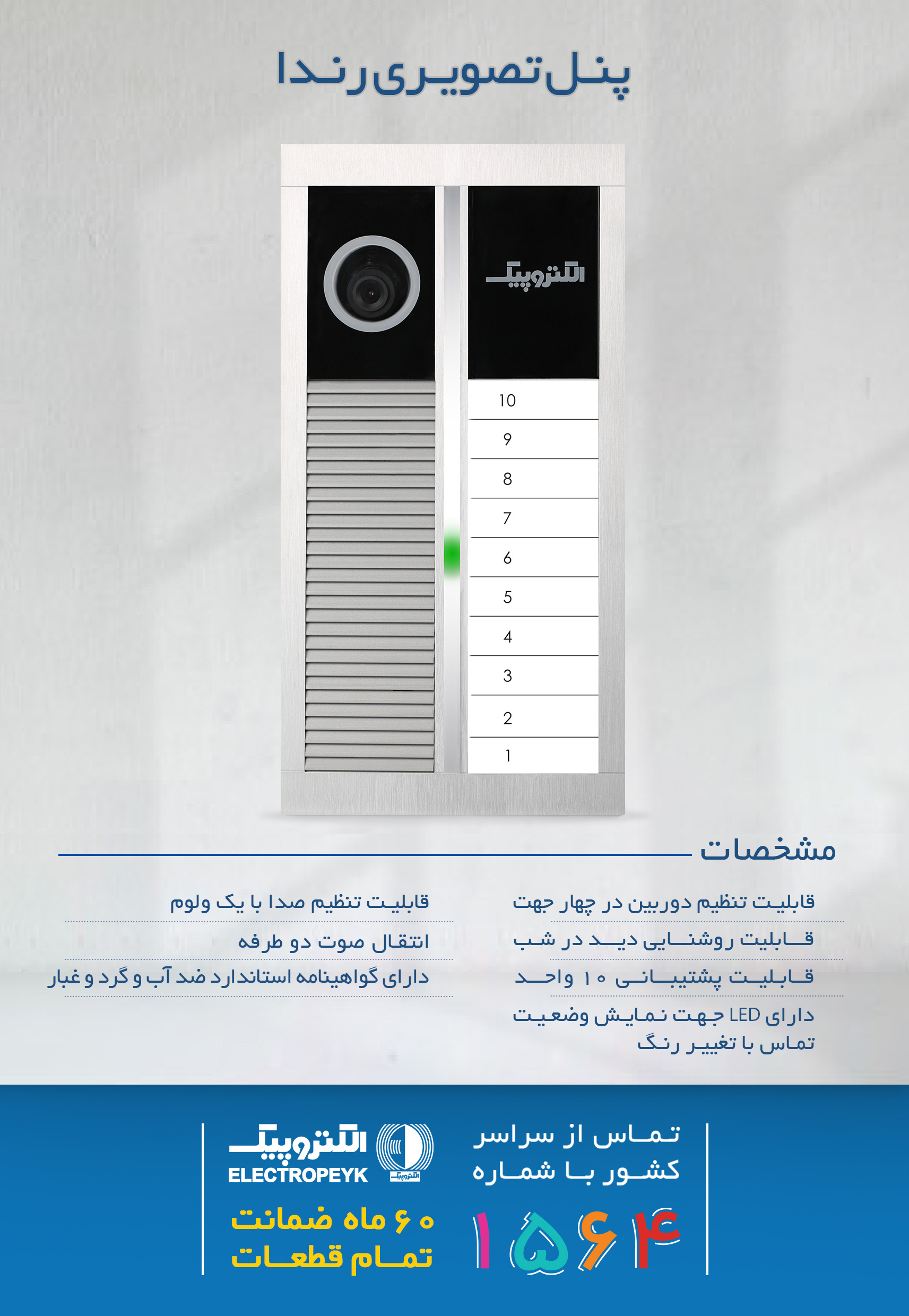دارای صفحه کلید لمسی (خازنی)قابلیت دید در شب با کیفیت بالا60 ماهه الکتروپیکطراحی زیبا و فوق العاده شیک برای ساختمان هایی نهایتا تا 10 واحددید در شب با کیفیت